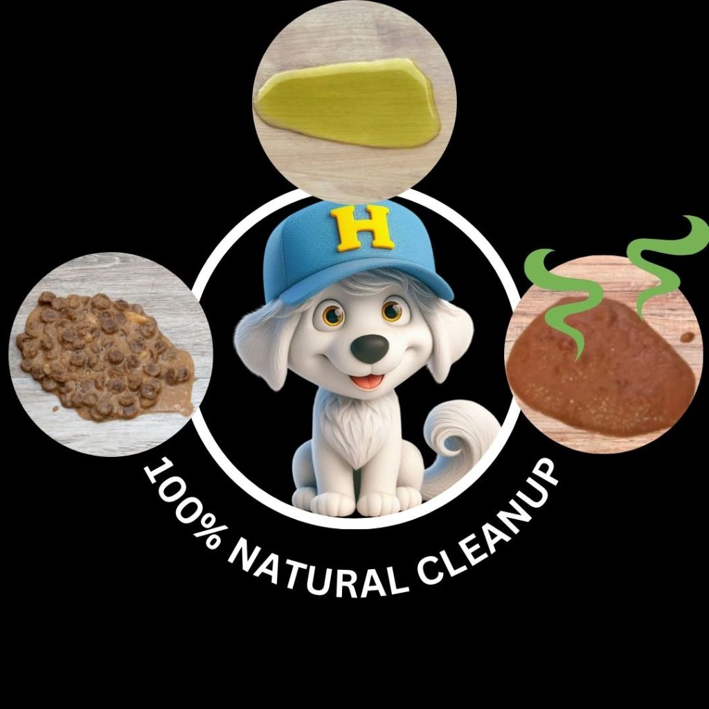 A new, natural, and highly effective indoor and outdoor solution for cleaning dog accidents such as pee, poo and vomit and effective dog urine smell, odour removal and ammonia control.