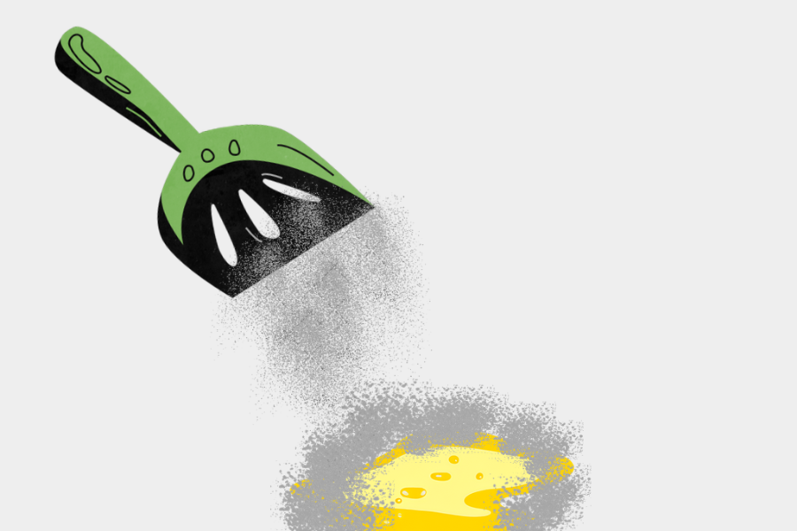 Sweep the absorbed soiled Eco Pawz CleanUp and dispose.